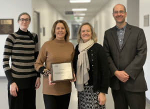 Pour marquer cette reconnaissance, une plaque honorifique lui a été remise le 24 novembre 2025 par Dre Nathalie Caire Fon, vice-doyenne aux affaires pédagogiques et aux partenariats, Dr Vincent Jobin, directeur du DPC, ainsi qu’Isabelle Lareau, coordonnatrice du service d’accréditation.